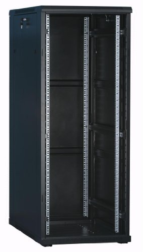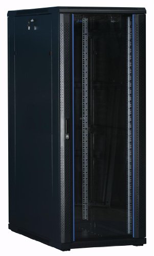 - 19" Serverschrank mit Sicherheitsglas-Sichttür, abschließbar mit Türgriff, variabler Anschlag