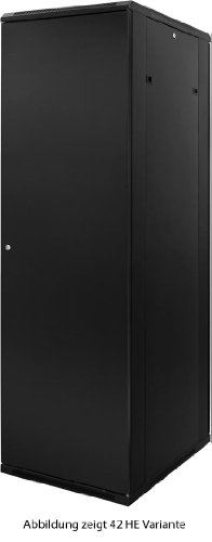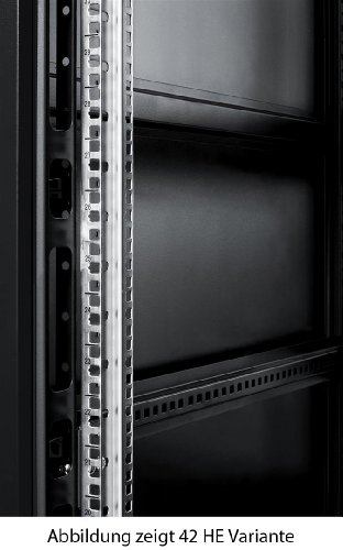 - 19" Serverschrank mit Sicherheitsglas-Sichttür, abschließbar mit Türgriff, variabler Anschlag