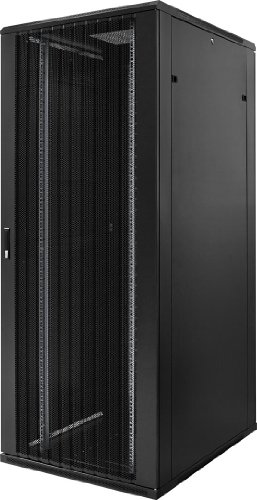 - 19" Serverschrank mit Gitternetz-Tür, abschließbar mit Türgriff, variabler Anschlag