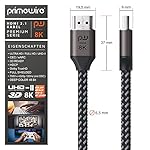- Primewire Premium HDMI-Kabel 8k mit Ethernet Channel | volle UHD II 8k-Leistung: 7680 × 4320 bei 30 Hz (mit HDR 4:4:4) und 120 Hz mit DSC-Unterstützung | unterstützt modernen HDMI 2.1-Standard (abwärtskompatibel)