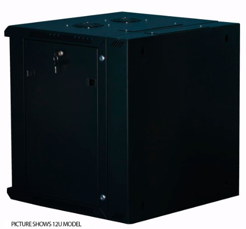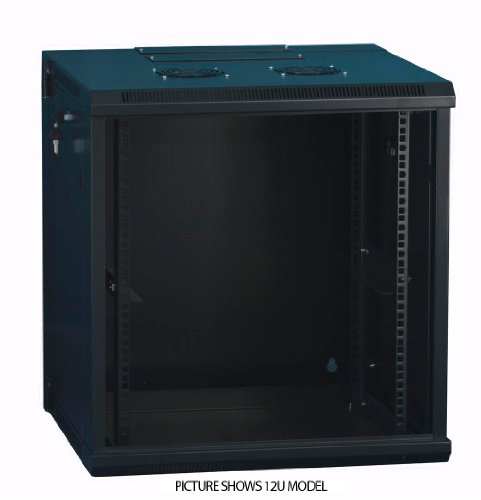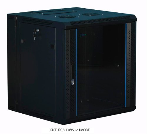 - 19" wandmontierter Serverschrank mit Sicherheitsglas-Sichttür, abschließbar mit Türgriff, variabler Anschlag