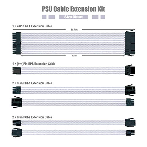 - Netzteilkabel-Verlängerungskit - Das Paket enthält: 1x24-poliges ATX-Motherboard-Stromkabel, 1x (4 + 4) Pin EPS-Stromkabel, 2x8-poliges PCI-e- und 2x6-poliges PCI-e-GPU-Stromkabel