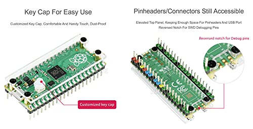 - 【Pinheaders/Connectors Still Accessible】Elevated top panel, keeping enough space for pinheaders and usb port, reversed notch for swd debugging pins