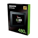 ADATA SU655 SSD 2,5 Zoll, 480 GB SATA QLC 3D NAND, 520 MB/s, Schwarz