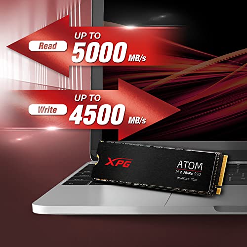 ADATA XPG Atom 50 512GB PCIe Gen4 x4 NVMe 1.4 M.2 2280 Internal Solid State Drive SSD Up to 5,000 MB/s, Heat Spreade, 3D-Grafikbearbeitung sowie High-End-Gaming PS5 upgradation (AATO-50-512GCI)