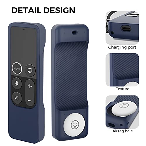 AHASTYLE Case Fernbedienung Hülle für Apple TV Remote 4K 4. Generation mit AirTag Halter【AirTag Nicht Enthalten】, Anti-Rutsch Silikone Remote Case für Apple TV 4K 4. Generation (Mitternachtsblau)