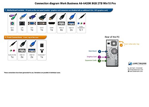 Ankermann-PC Work Business, AMD A6 6420K 2x4,00GHz Turbo:4,20GHz, onBoard Graphic DVI-HDMI-VGA, 8GB RAM, 2TB HDD, be quiet! System Power B8 300W, Microsoft Windows 10 Professional, Card Reader, EAN 4260409324695