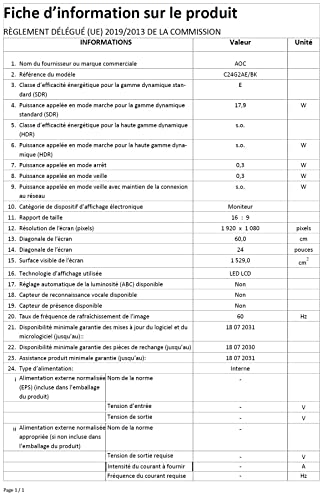 - Lieferumfang: AOC C24G2AE Monitor 59,9 cm (23,6 Zoll) schwarz, Stromkabel, HDMI, Displayport, Treiber-CD, Garantiekarte