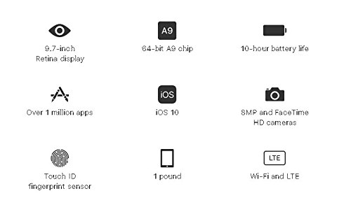 - ►►► RETINA DISPLAY mit 9,7 Zoll Diagonale, LED-Hintergrundbeleuchtung, Multi-Touch RETINA Display mit IPS-Technologie, 2048 x 1536 Pixel Auflösung bei 264 ppi, Fingerabdruck-resistente oleophobe Beschichtung.