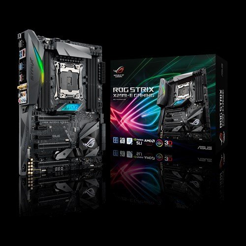 - Lieferumfang: Asus ROG Strix X299-E-Gaming, Nutzerhandbuch, Asus Q-Shield, vertikale M.2 Klammern, 4x SATA 6Gb/s Kabel, M.2 Schraubenset, Support-DVD, 2-Way SLI HB Bridge