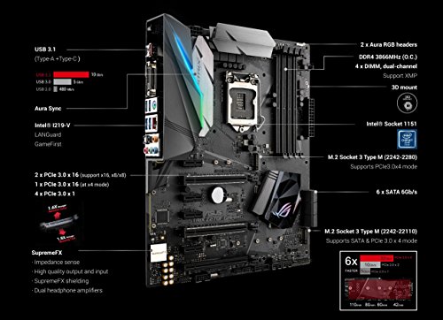 Asus ROG Strix Z270F Gaming Mainboard Sockel 1151 (ATX, Intel Z270, Kabylake, 4x DDR4-Speicher, USB 3.1, M.2 Schnittstelle)