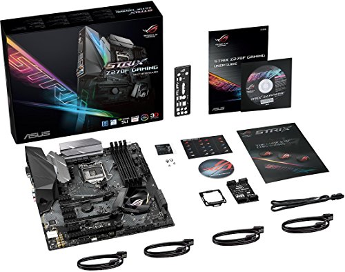 - Lieferumfang: 1x ROG Strix Z270F Gaming Mainboard, 4x SATA 6Gb/s Kabel, 1x SLI HB Bridge, 1x CPU Installationstool, 1x RGB LED Verlängerungskabel, 1x Unterstützungs-DVD, 1x Nutzerhandbuch