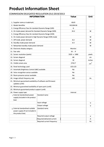 ASUS TUF Gaming VG328H1B 80,01 cm (31,5 Zoll) Curved Monitor (Full HD, 165Hz, Adaptive-Sync, Free-Sync Premium, VGA, HDMI, 1ms Reaktionszeit) schwarz