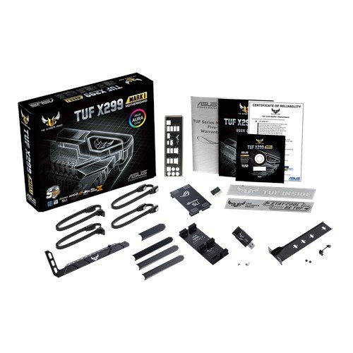 - Lieferumfang: Asus TUF X299 Mark 1, Nutzerhandbuch, vertikale M.2 Klammern, 4x SATA 6Gb/s Kabel, Asus SLI Bridge, M.2 Schraubenset, Support-DVD, TUF Garantieschein, PCIe Staubschutz, TUF Grafikkartenhalter