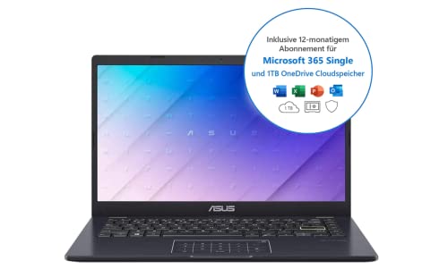 ASUS VivoBook 14 E410MA-EK724TS inkl. Microsoft 365 Single Laptop 35,5cm (14 Zoll, FHD, 1920x1080) Notebook (Intel Celeron N4020, 4GB RAM, 128GB eMMC, shared Grafik, Win10S) Peacock Blue