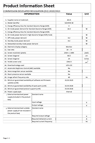 - Lieferumfang: Asus VZ249HE-W, VGA-Kabel, Netzteil, Stromkabel, Kurzanleitung, Garantiebeschreibung