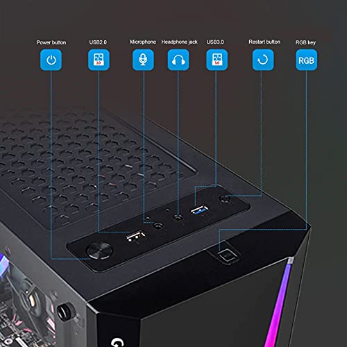 - ★ Gehäusegröße: 373 x 182 x 415 mm, mit ausreichend Platz für jedes Teil, robust und langlebig. Die transparente Seitenwand aus gehärtetem Glas kann Ihre Struktur vollständig zeigen und eignet sich für Ihren PC, Theater-PC und Gaming-PC.