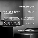- 【Effizienter Celeron J4125 Prozessor & Betriebssystem】Lüfterloser industrie pc mit Celeron J4125 Prozessor, 2,00 GHz (bis zu 2,70 GHz, 4M Cache), 4 Kerne 4 Threads, UHD Graphics 600, mini desktop pc mit vorinstalliertem Windows 10 Pro 64Bit vor Verpackung.