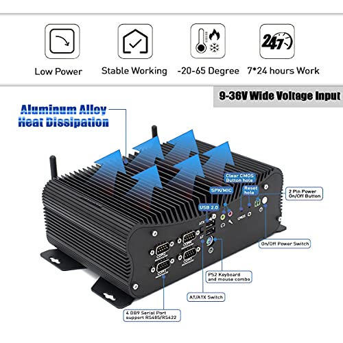 - 【Leistungsstarke Funktionen】 Es unterstützt das automatische einschalten, watchdog, zurücksetzen eines schlüssels, festplattenlaufwerk usw. 2 i201/i211 Gigabit RJ45 LANs, 6 DB9 COM, 4 COM unterstützen RS422/RS485, PS/2, GPIO reiche schnittstellen für verschiedene geräte.