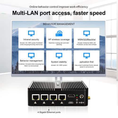 - 【Lüfterlose PC CPU & LAN】 Dieser lüfterlose mini pc mit vorinstalliertem Win10-64 Bit, Mini PC mit Celeron J4125 Prozessor (4 MB Cache, 4 Kerne, 4 Threads, Basisfrequenz 2,00 GHz, bis zu 2,70 GHz), UHD Graphics 600. Der desktop pc verfügt über 4 RJ45 LAN Ports, die für Firewall Anwendungen, VPN, Server, Netzwerksicherheit, Router und andere Bereiche geeignet sind.