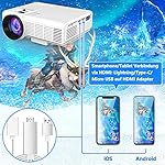 Beamer HI-04 [ Mit 100 Zoll-Leinwand ], Beamer Full HD 1080P Unterstützt, Mini Beamer 6500 Lux, Video Projektor Kompatibel mit TV-Stick Smartphone Tablet HDMI VGA USB AV TF, Heimkino Beamer, Weiß.
