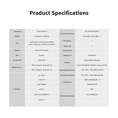 - 🚩【Lithographie 10nm und N5095 Prozessor】 Mini PC U59 ist mit N5095 Prozessor (10nm Advanced Lithography, 4 Kerne / 4 Threads, bis zu 2,90 GHz), vorinstalliertem lizenziertem Windows 10 Pro-System ausgestattet. Hervorragend geeignet für leichte Arbeiten, Fotobearbeitung (wie Pr, Ps, C4D, CAD, Visual Studio, Office) gleichzeitiges Multitasking reibungslos.