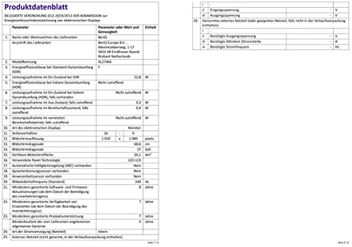 - Mit dabei sind: ein Kabel für die Stromversorgung (1,8 m) und ein Display-Port-Kabel (1,8 m)