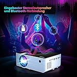 - 【Bluetooth Beamer bringt Ihnen Kino Stereo Sound】Unser Bluetooth Beamer ist mit internen Dual 5W Hi-Fi Stereo-Lautsprecher mit SRS-Soundsystem ausgestattet. Es bietet eine originalgetreue Audiowiedergabe (detaillierter Soundeffekt ein tolles Hörerlebnis). Auch mit dem neuesten Bluetooth 5.0-Chip ausgestattet, können Sie Ihren Bluetooth-Lautsprecher oder Kopfhörer jederzeit drahtlos verbinden, wie Sie möchten! (Tipp: Es können Audio Geräte nur mittels Bluetooth angeschlossen werden).