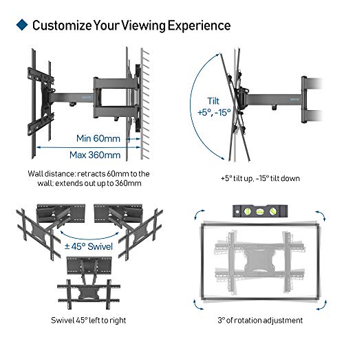 - ULTRADÜNN AN DER WAND & GROSSE REICHWEITE - Ausziehbar bis zu 360 mm von der Wand entfernt, so dass Sie Ihren Fernseher bei Bedarf in die perfekte Position bringen können. Es lässt sich 60 mm zur Wand zurückziehen, um Platz in Ihrem Wohnzimmer zu sparen und gleichzeitig ein schlankes, elegantes Aussehen zu erhalten.