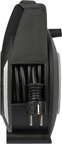 Brennenstuhl Vario Line Kabelbox 4-fach/Mini-Kabeltrommel (Indoor-Kabeltrommel für Haushalt, 15 m Kabel, Made in Germany) schwarz/grau