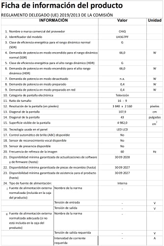 CHiQ 43 Zoll, Android 9.0, Smart TV, UHD, 4K WiFi, Bluetooth, Google Play Store, Google Assistant, Chromecast Bulit-in, Netflix, Video, Triple Tunner, Hdmi, USB