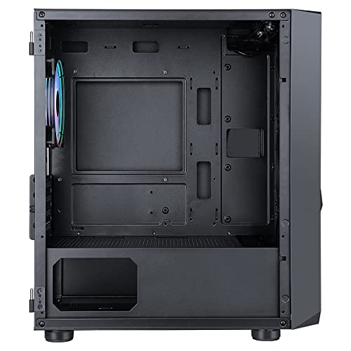 - Kühlung – Vier werkseitig installierte ARGB-Lüfter sind vorinstalliert und unterstützen weitere zwei Lüfter. Oberteil: Platz für 2 x 120 mm Lüfter. Dieses Micro-ATX-Gehäuse passt auch auf einen 360-mm-Kühler an der Vorderseite, einen 240-mm-Kühler an der Oberseite und einen 120-mm-Kühler an der Rückseite des Gehäuses.