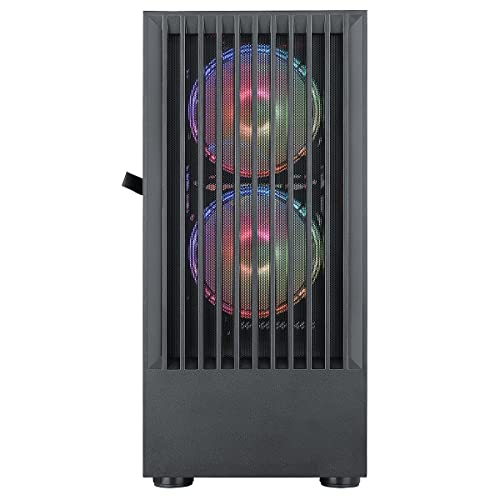 - Kühlung Unterstützung – drei werkseitig installierte ARGB-Lüfter sind vorinstalliert und unterstützen weitere zwei Lüfter. Oberteil: Platz für 2 x 120 mm Lüfter. Dieses Micro-ATX-Gehäuse passt auch auf einen 360-mm-Kühler an der Vorderseite, einen 240-mm-Kühler an der Oberseite und einen 120-mm-Kühler an der Rückseite des Gehäuses.