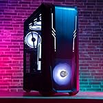 - ARGB-Frontplatte - Die ikonische geometrische MasterBox-Fassade verfügt über minimalistische, von Schaltkreisen inspirierte ARGB-Streifen, die dem Gehäuse ein stilvolles und futuristisches Profil verleihen. Die ARGB-Beleuchtung kann mühelos über eine dedizierte Taste am I/O-Panel gesteuert werden.