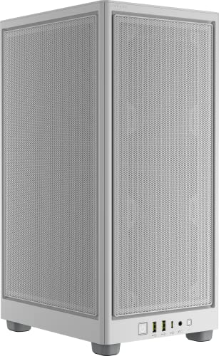 Corsair 2000D Airflow Mini-ITX-PC-Gehäuse (Mini-ITX-Formfaktor, Abdeckungsgitter aus Stahl, Unterstützung von GPU mit DREI Steckplätzen, Mitgelieferter CORSAIR AF120 Slim-Lüfter) Weiß