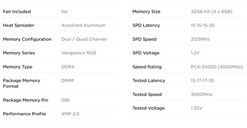 - Lieferumfang: Corsair CMR32GX4M4C3000C15 Vengeance RGB Enthusiast LED-Beleuchtung Speicherkit schwarz
