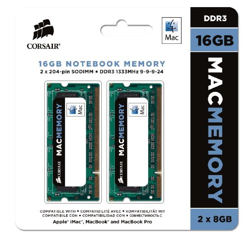 - Lieferumfang: Corsair Apple Retailverpackung mit 16GB-Kit So-Dimms (2 x 8GB-Module), 1333MHZ CL9