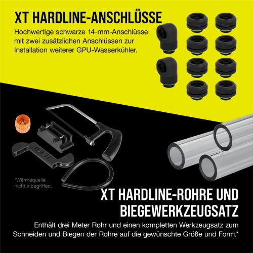 - Machen Sie Ihren PC zu einem Meisterwerk: Ein vollständiges und individuell anpassbares Hydro X Series RGB PRO Hardline-Kühlungs-Kit verleiht Ihrem System einen beeindruckenden, markanten Look.