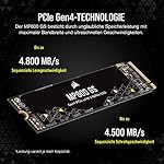 Corsair MP600 GS 500 GB PCIe Gen4 x4 NVMe M.2-SSD – Hochdichter TLC NAND – M.2 2280-Formfaktor – Kompatibel mit DirectStorage – Bis zu 4.800 MB/s – Ideal für PCIe 4.0-Notebooks – Schwarz