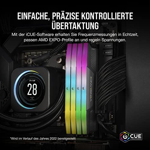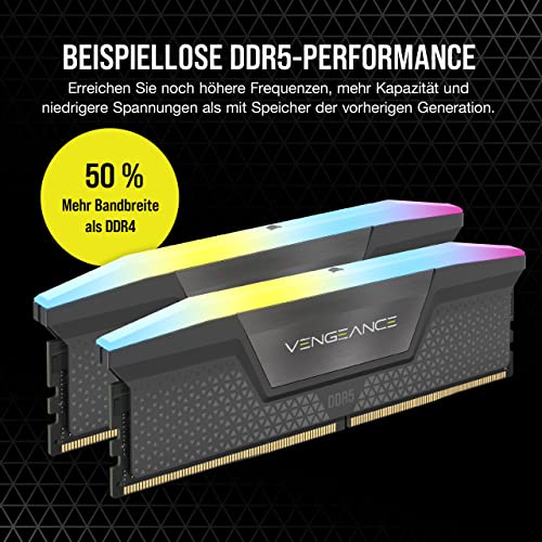 Corsair Vengeance RGB DDR5 32GB (2x16GB) 6000MHz C36 Optimiert für AMD-DDR5 Arbeitsspeicher - Dynamische Zehn-Zonen-RGB-Beleuchtung, Onboard-Spannungsregelung, AMD Expo-Kompatibilität - Grau