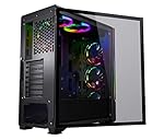Cortek Blade Gaming-Gehäuse ATX Mid-Tower mit Seitenplatte aus gehärtetem Glas, Frontplatte aus Glas, RGB-Streifen vorne, hoher Luftstrom, Rücklüfter 120 mm, Schwarz