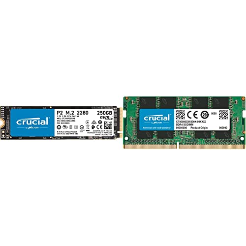 Crucial P2 CT250P2SSD8 250GB Internes SSD, Bis zu 2400MB/s (3D NAND, NVMe, PCIe, M.2) & RAM 8GB DDR4 3200MHz CL22 (2933MHz oder 2666MHz) Laptop Arbeitsspeicher CT8G4SFRA32A