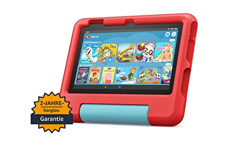 - Ein vollwertiges Fire 7-Tablet (kein Spielzeug) für Kinder von 3 bis 7 Jahren, 1 Jahr Amazon Kids+, eine kindgerechte Hülle mit integriertem Ständer und 2 Jahre Sorglos-Garantie.