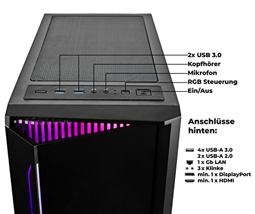 - Individuelle Farbgestaltung möglich - Das Gehäuse ist schwarz mit einer RGB Beleuchtung an der Gehäusefront. Sie können die Beleuchtung über die RGB Steuerung am PC ändern