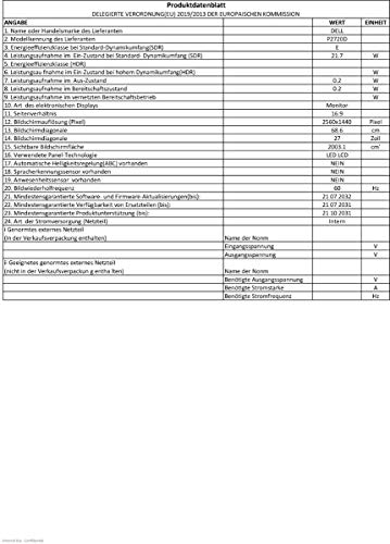 Dell P2720D, 27 Zoll, QHD 2560 x 1440, 60 Hz, IPS entspiegelt, 16:9, 5 ms (extrem), höhenverstellbar/neigbar/drehbar, VESA, DisplayPort, HDMI, 3 Jahre Austauschservice, schwarz/silber