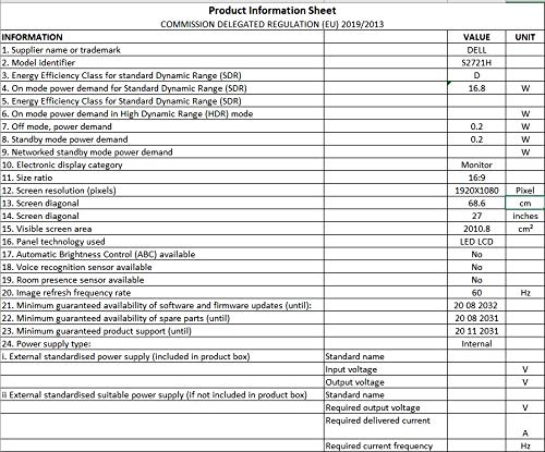 - Dell 27 Monitor - S2721H, LCD, 4 ms Reaktionszeit