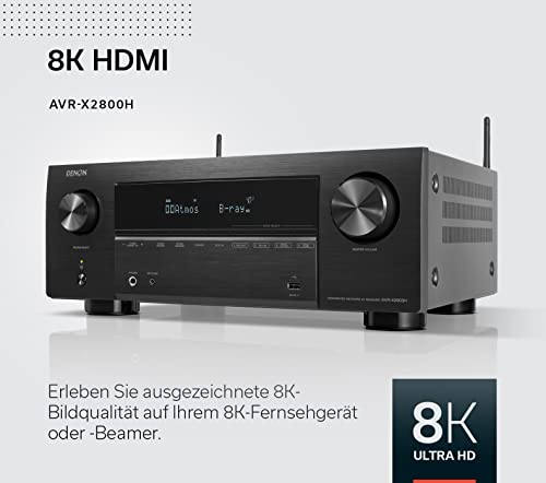 Denon AVR-X2800H 7.2-Kanal AV-Receiver, HiFi Verstärker mit Dolby Atmos, DTS:X, 6 HDMI Eingängen und 2 Ausgängen, 8K HDMI, Bluetooth, WLAN, AirPlay 2, HEOS Mulitroom, Alexa kompatibel, schwarz