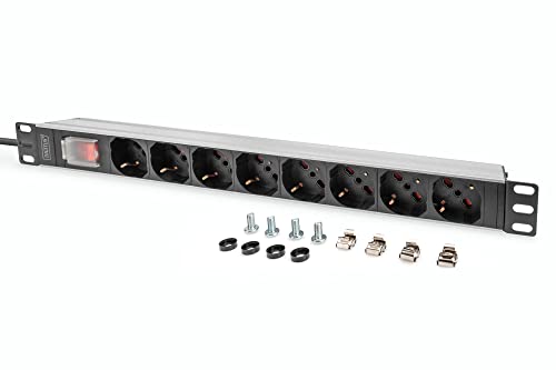 DIGITUS Steckdosenleiste mit Aluminiumprofil und Schalter, 8-Fach Italienische Ausgang, 2 m Zuleitung, Italienischer Stecker