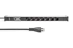 DIGITUS Steckdosenleiste mit Aluminiumprofil und Überspannungsschutz, integrierter Netzfilter, 7-Fach, 2 m Zuleitung, Italienischer Stecker