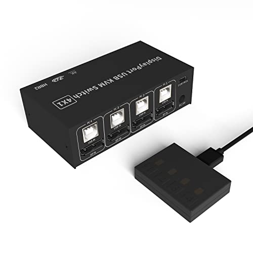 DisplayPort KVM Switch 4 Port Umschalter, 4K@60Hz USB und DP Switch 4 In 1 Out KVM USB DP Switchbox für 4 PC Freigabe Tastatur Mausmonitor, kompatibel mit Laptop, PC, PS4, Xbox HDTV
